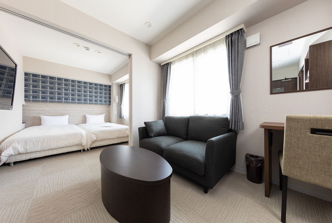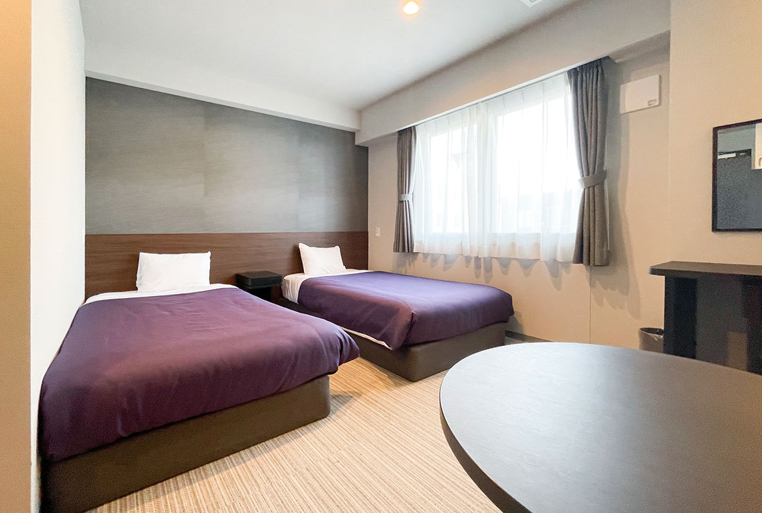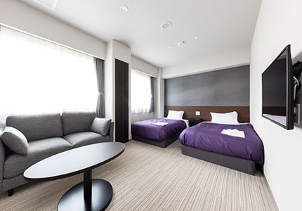お客様にゆったりとした時間を過ごしていただきたいという思いから、一般的なビジネスホテルよりもお部屋を広く設計しております。ビジネス利用からファミリーでのご旅行まで、どんな目的にも対応できる広々としたお部屋で、お客様に心からの喜びとリラックスを提供いたします。